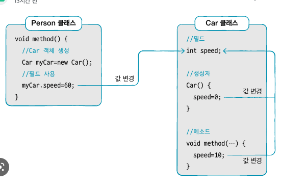 myCar.speed = 60; //도트 연산자를 사용해서 speed 필드에 접근할 수 있습니다. Car 객체의 speed 필드값을 60으로 변경하고 있습니다.