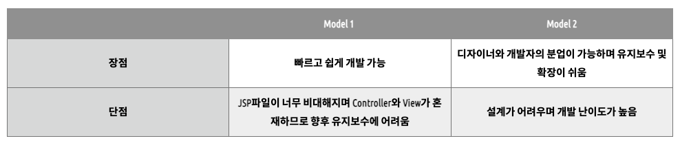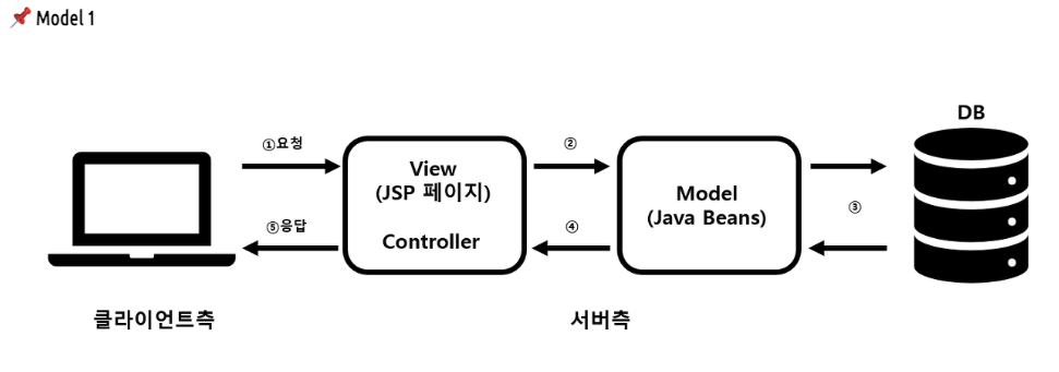 - 모델 1 방식: JSP에서 출력과 로직을 전부 처리
