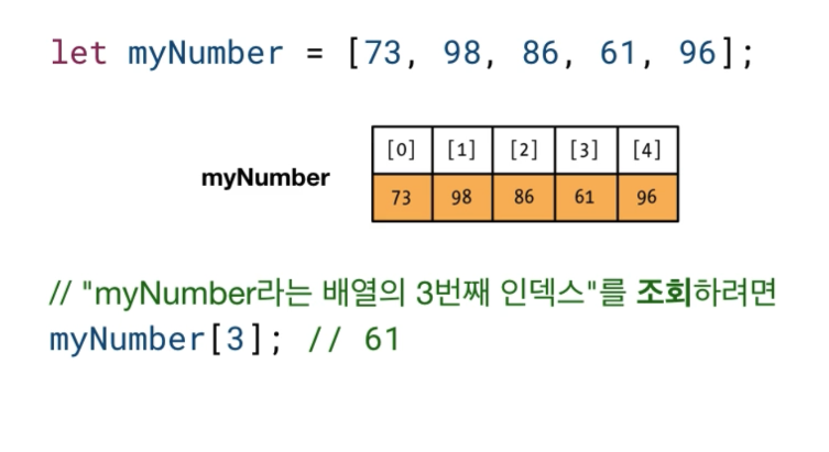 인덱스(index)의 범위는 0부터 '배열길이 -1'까지