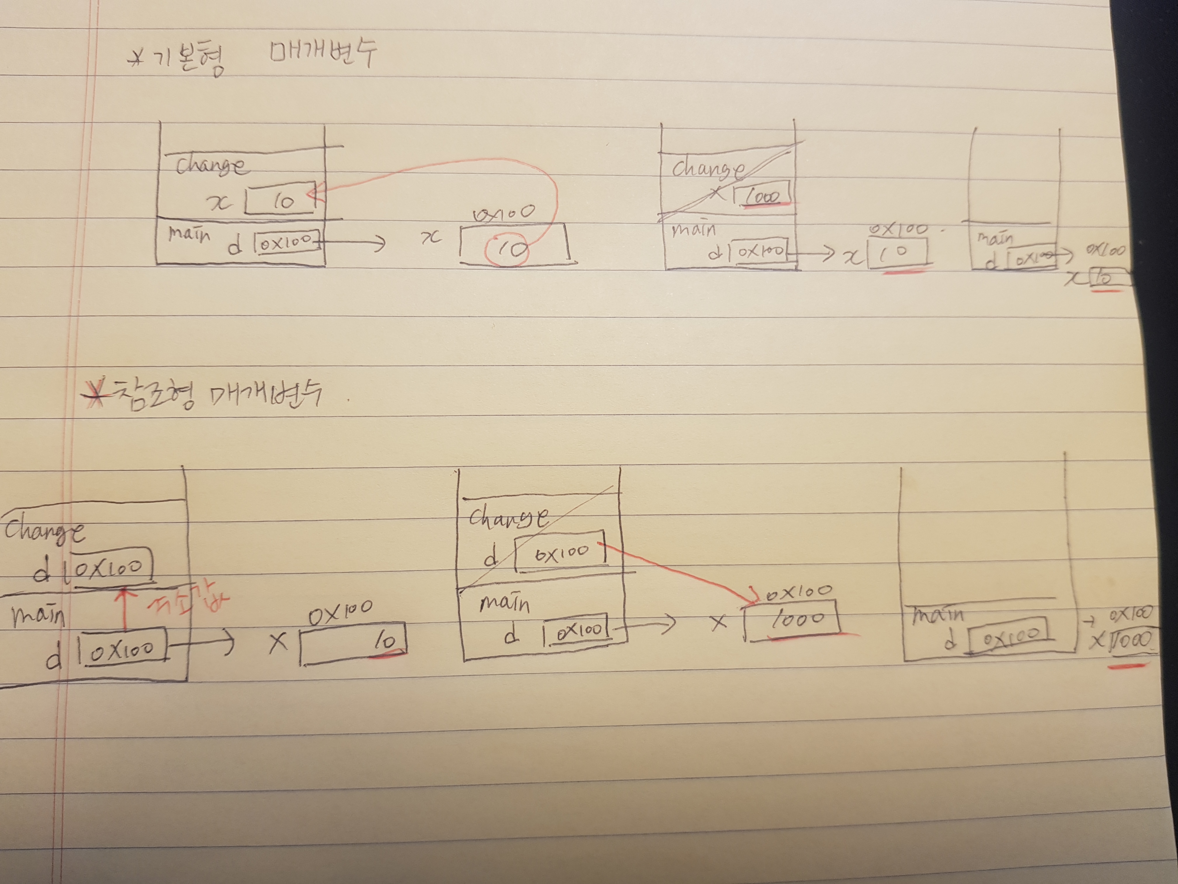 - 기본형 매개변수 : 변수의 값을 읽기만 할 수 있다. (read only)