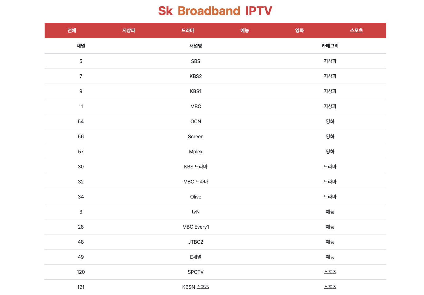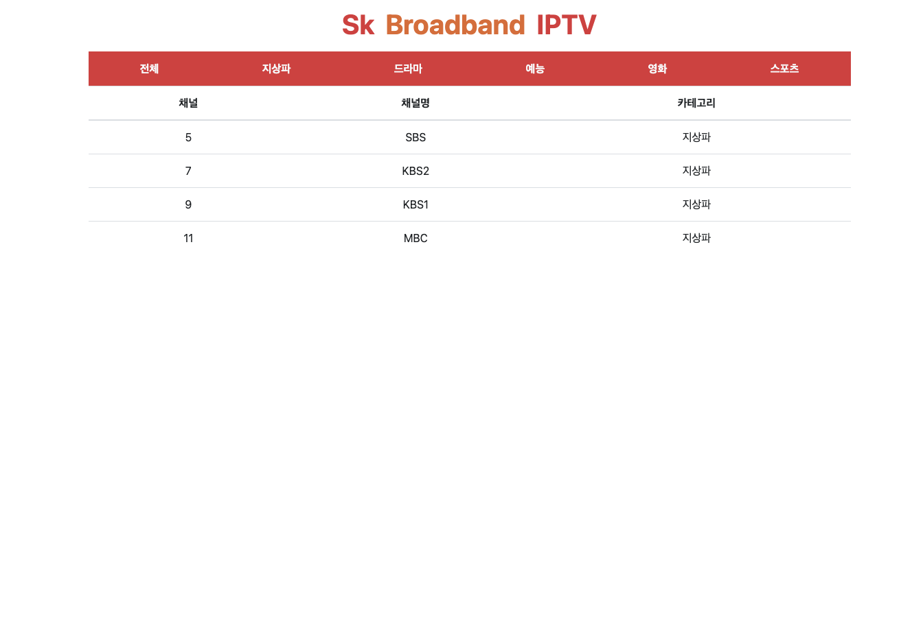 - 각 메뉴에 해당하는 카테고리에 맞게 목록으로 구성.