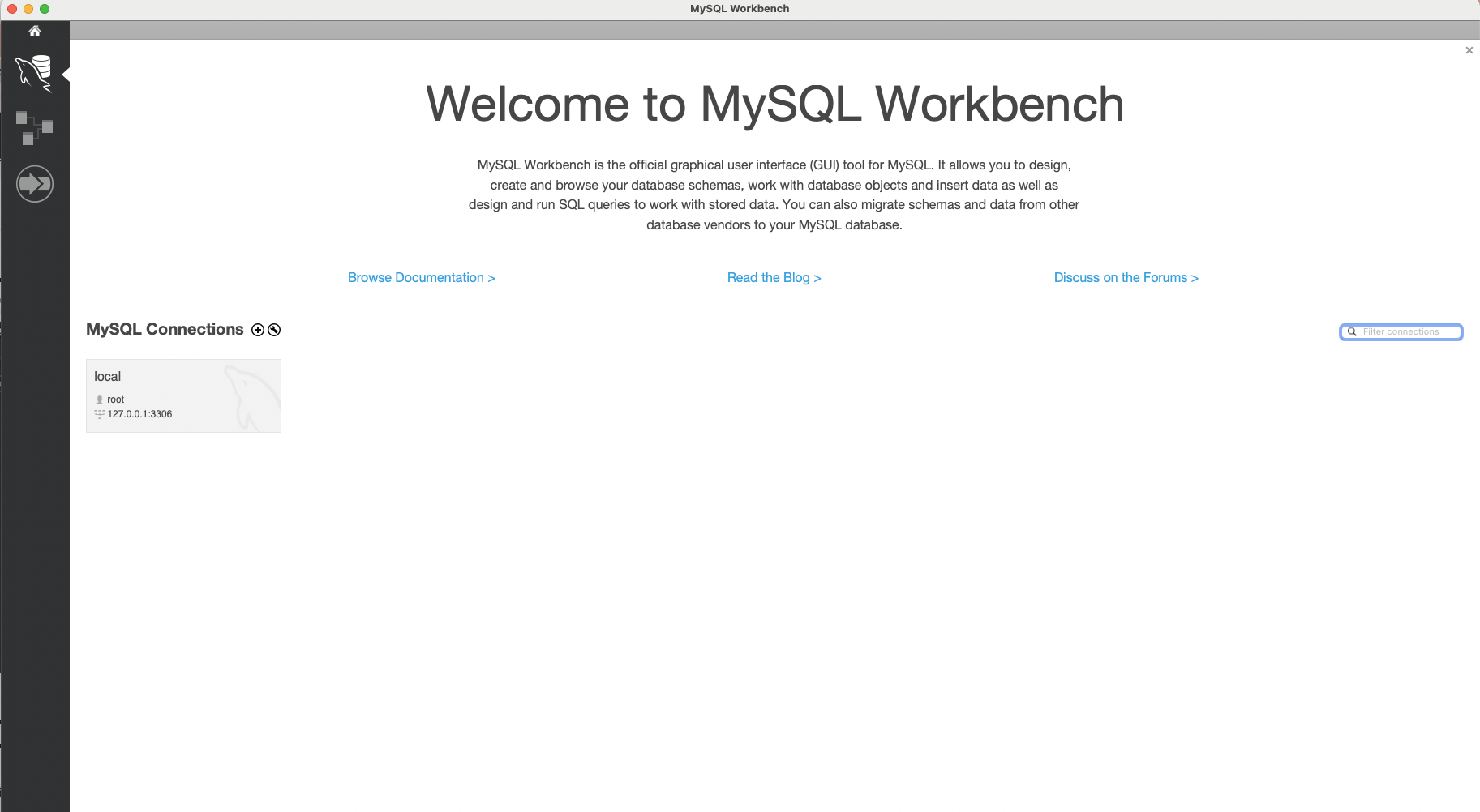 - 로컬 서버에 세팅된 127.0.0.1:3306 서버에 접속한다.