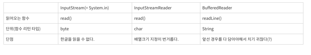 InputStreamReader는 InputStream객체를 입력으로 갖고있어야하기 때문에 new InputStreamReader(System.in)과 같은 형태가 된것입니다. 그리고 InputStreamReader가 되면서 byte로 받는 수준에서 char로 받을 수 있게 되었습니다. 하지만 배열크기를 일일이 지정해줘야해서 불편함이 남아있었습니다.