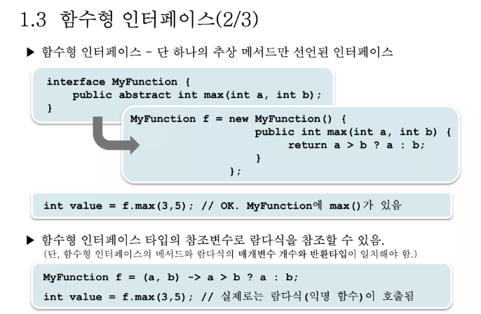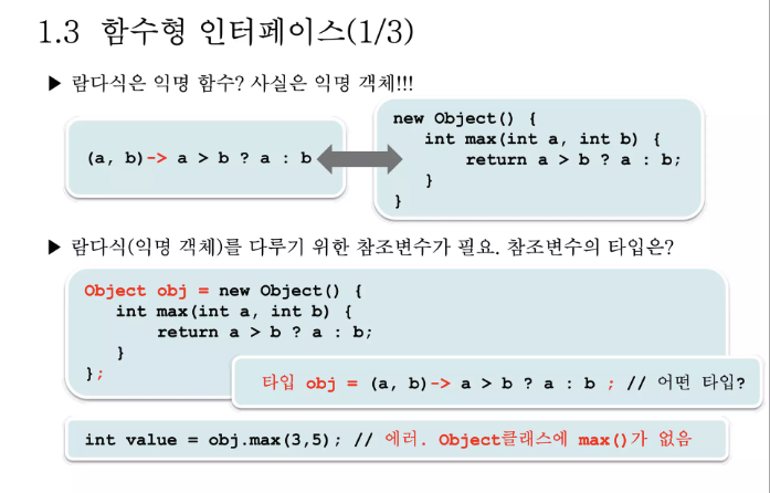 - 람다식은 익명 클래스의 객체와 동일하다.