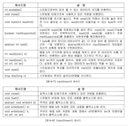 - InputStream과 OutputStream은 모든 바이트 기반 스트림의 조상이다.