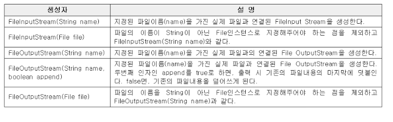 - FileInputStream과 FileOutputStream은 파일에 입출력을 하기 위한 스트림이다.