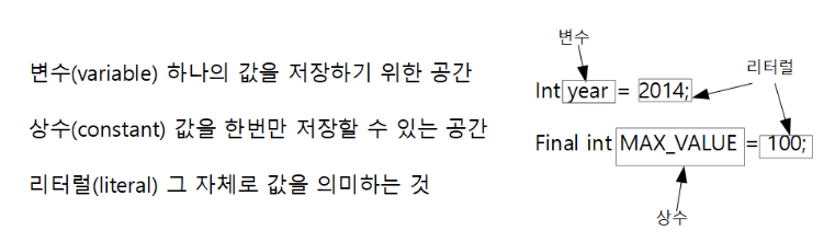 - 상수는 변수와 마찬가지로 값을 저장할 수 있는 공간이며 한번 값을 저장하면 다른 값으로 변경할 수 없다.