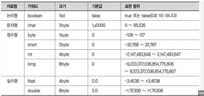 - 리터럴의 타입이 달라도 저장범위가 넓은 타입에 좁은 타입의 값을 저장하는 것은 허용된다.