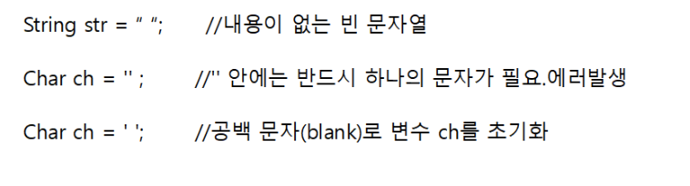 - 두 문자 이상은 큰따옴표로 감싸야 하며 '문자열 리터럴'이라고 한다.