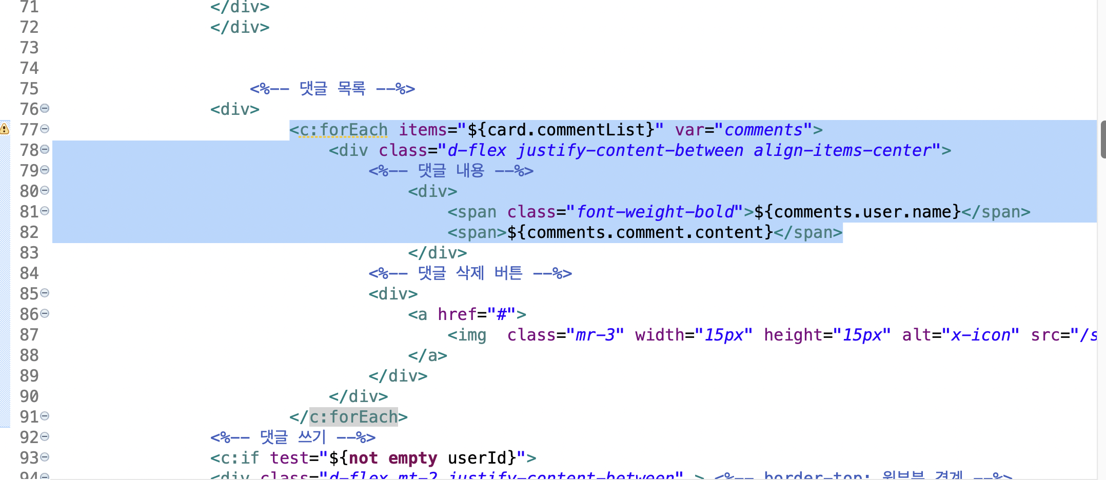 🌾 원인 : List를 jsp에서 뿌릴 때 items 명 잘못 구성.