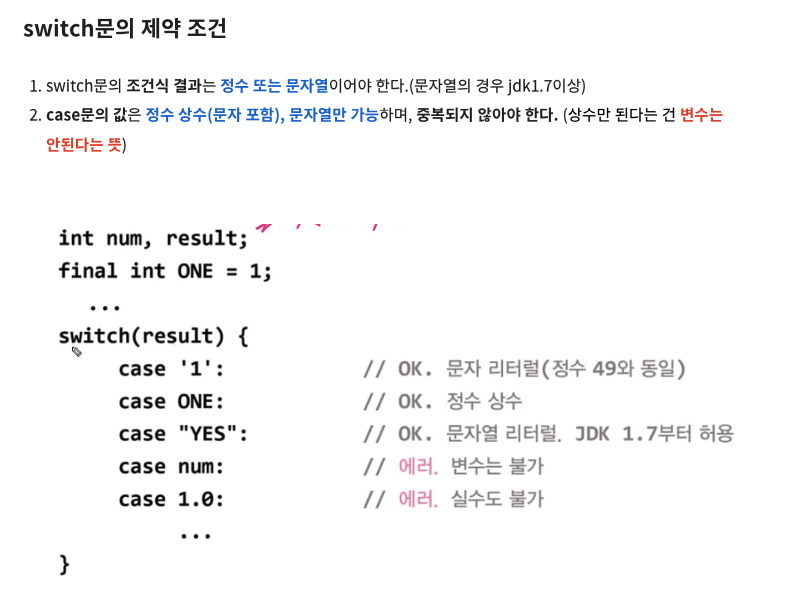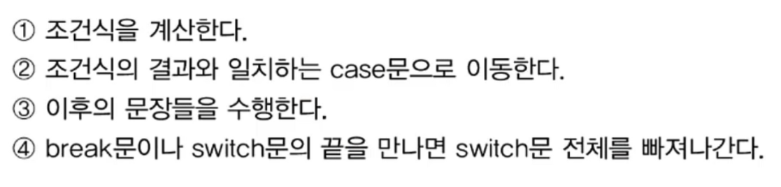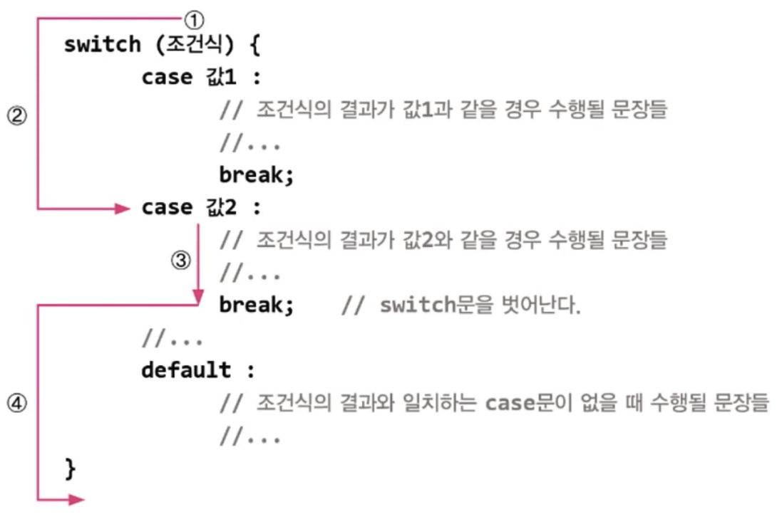 - 처리할 경우의 수가 많을 때는 switch문이 효율적이다.