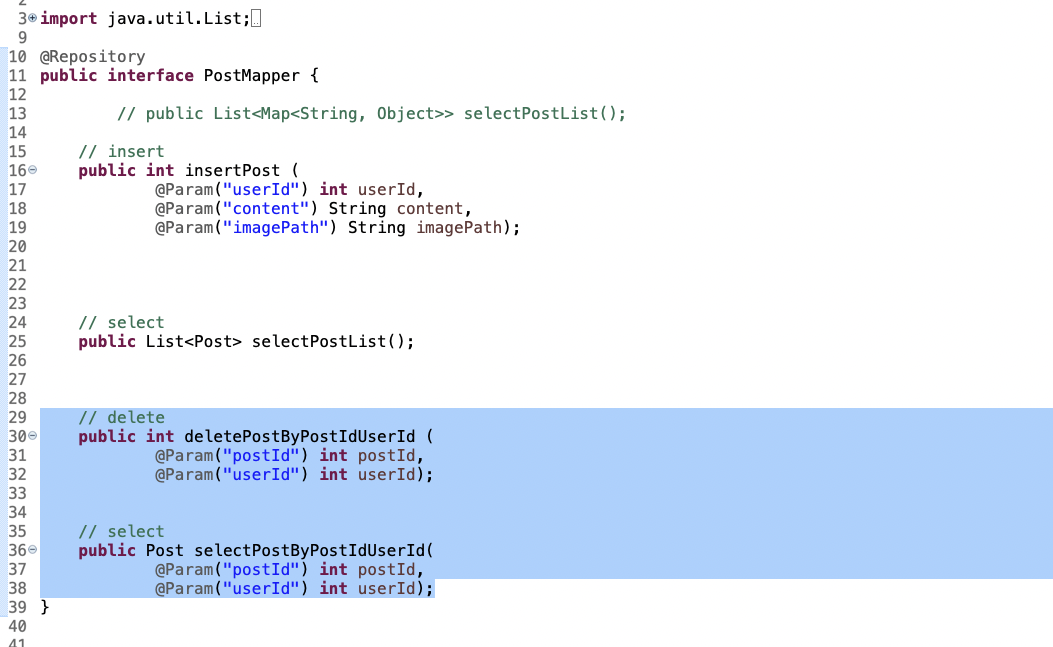 org.apache.ibatis.binding.BindingException: Parameter 'postId' not found. Available parameters are [arg1, arg0, param1, param2]