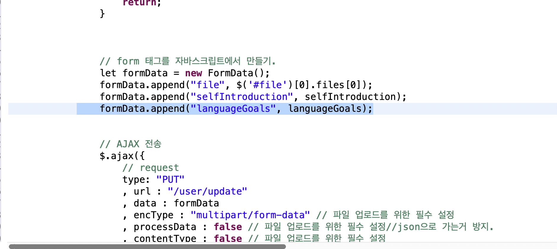 🌾 원인 :400 에러 - 잘못된 요청으로 문법상 오류. / 필수 파라미터 id인 (languageGoals)를 해야하는데, 다른 id를 썼다.