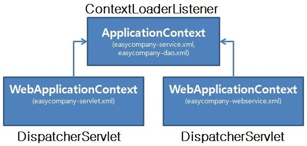 web.xml에는 ContextLoaderListener와 DispatcherServlet의 2가지 설정(기본적으로 xml)이 있다.