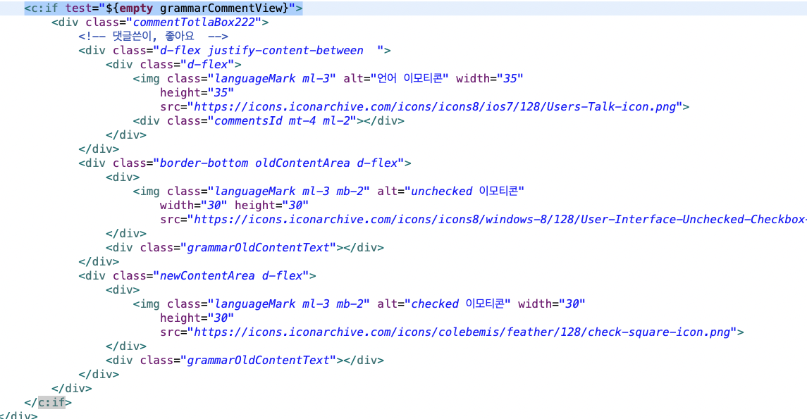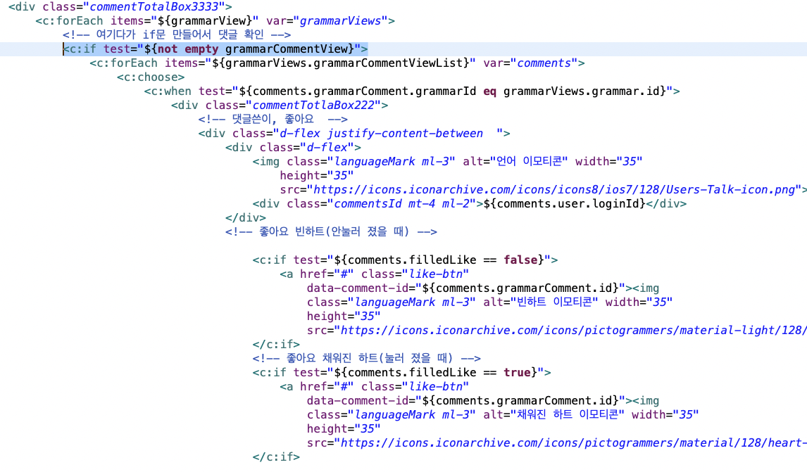 🌾 원인 : 빈 댓글 칸은 JSP에서 grammar객체에서 가져오면 안되고, comment객체를 가져와야 했다.