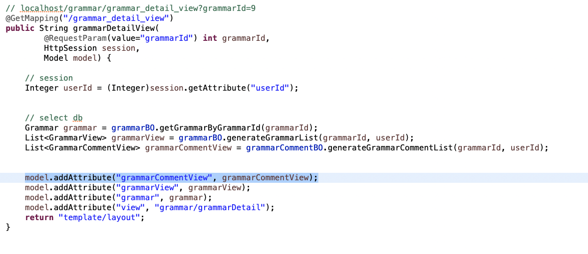 🌾 해결 방법 : Controller에 comment객체 model를 만들어 JSP에 뿌린다.