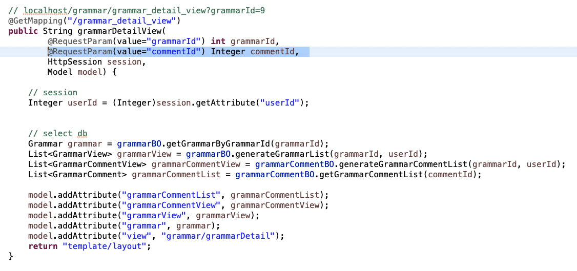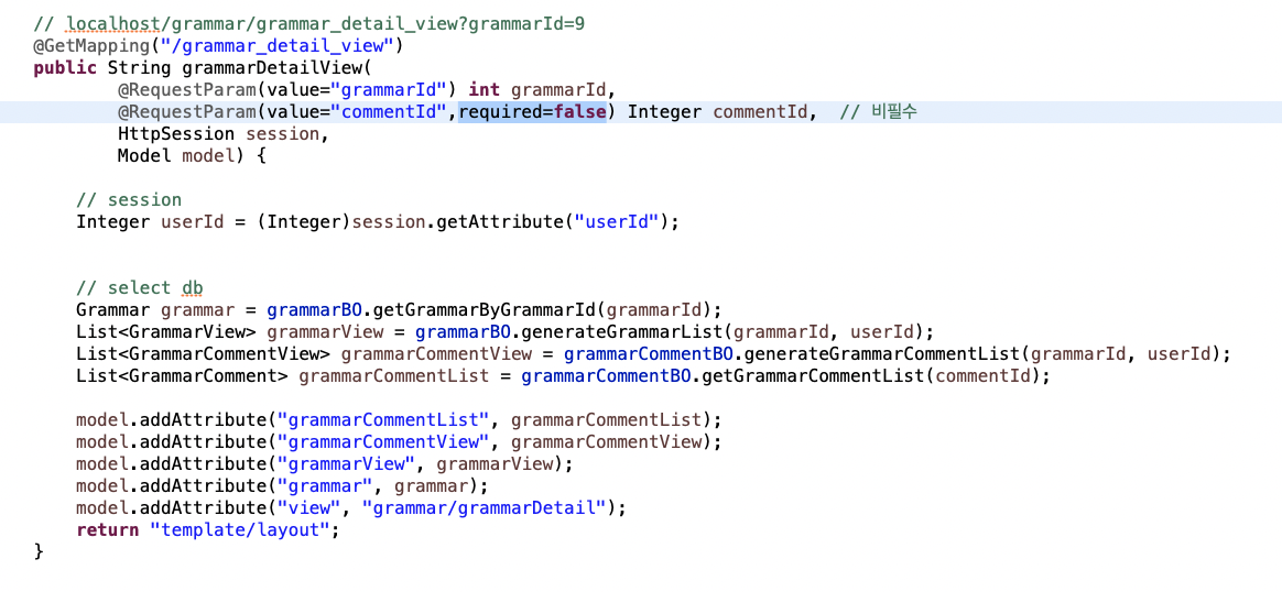 🌾 해결 방법 : commentId가 처음에 화면에 들어올 때는 필수가 아니기 때문에 required=false로 비필수 설정.