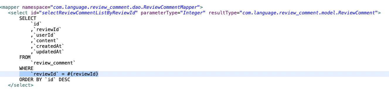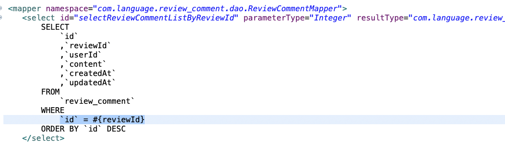 🌾 원인 : xml에서 reviewId로 파라미터를 받아서 comment - id를 조회해서 비어있는 댓글이 나오는 현상.