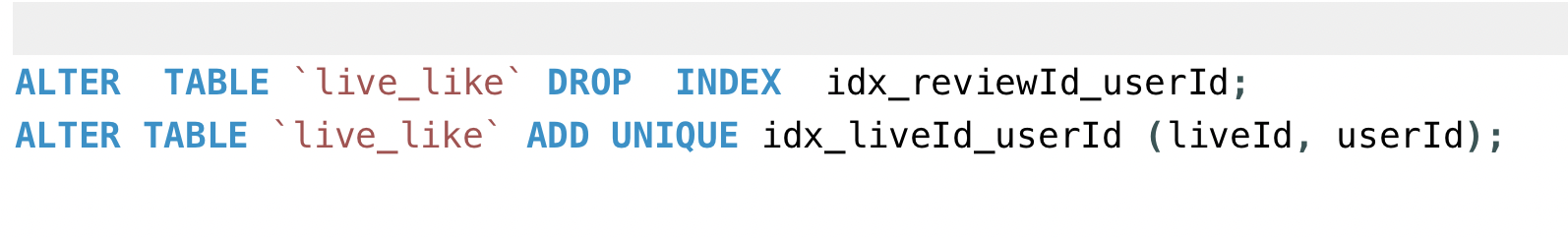 🌾 원인 : 좋아요 기능 만드는 중 필드명이 잘못 된 것을 보고 변경 했으나 unique도 다시 설정해야 하는 것을 발견!