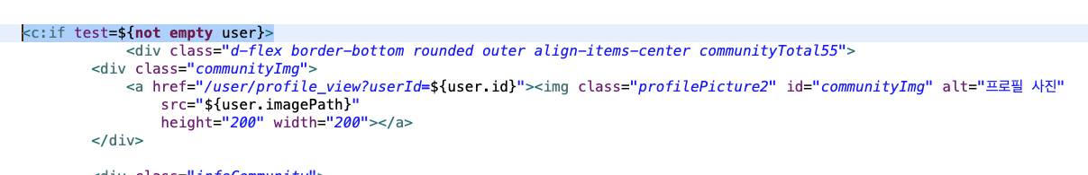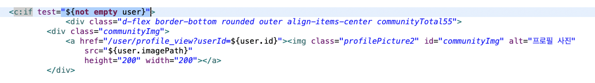 🌾 해결 방법 :<c:if test=${not empty user}> -> <c:if test="${not empty user}"> 따음표 써주기.