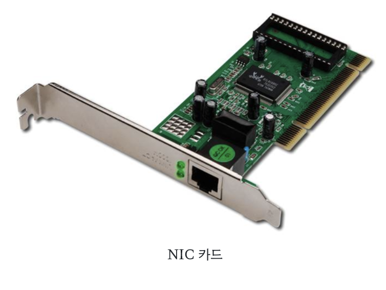- 네트워크 인터페이스 카드 (NIC, Network Interface Card)는 2대 이상의 컴퓨터 네트워크를 구성하는데 사용하며, 네트워크와 빠른 속도로 데이터를 송수신 할 수 있도록 컴퓨터 내에 설치하는 확장 카드이다.