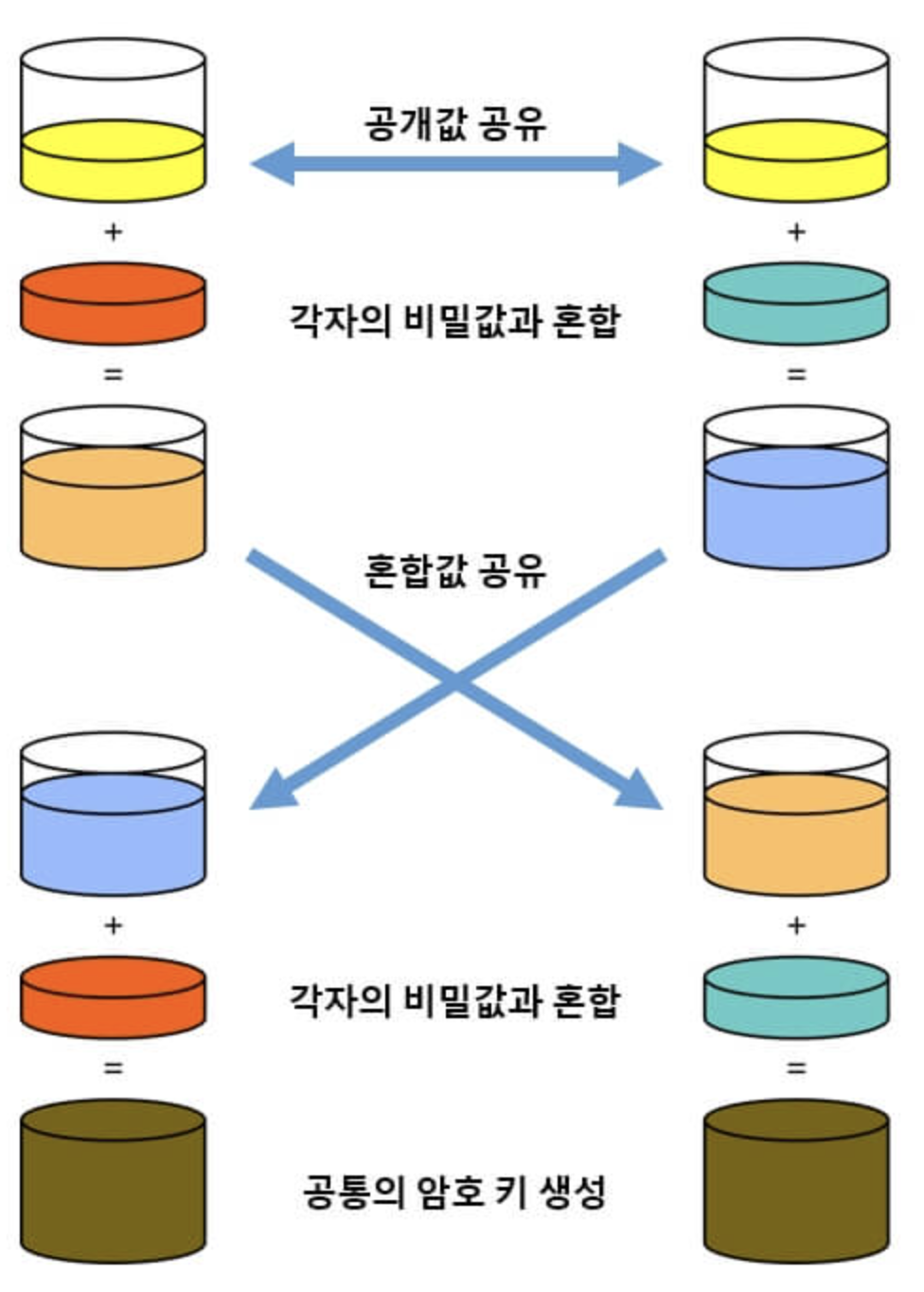 - 디피-헬만 키 교환 암호화 알고리즘은 암호키를 교환하는 하나의 방법이다.