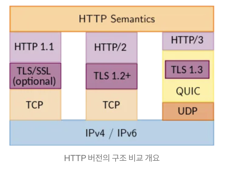 - TCP 위에서 돌아가는 HTTP/2와는 달리 HTTP/3은 QUIC이라는 계층 위에서 돌아간다.