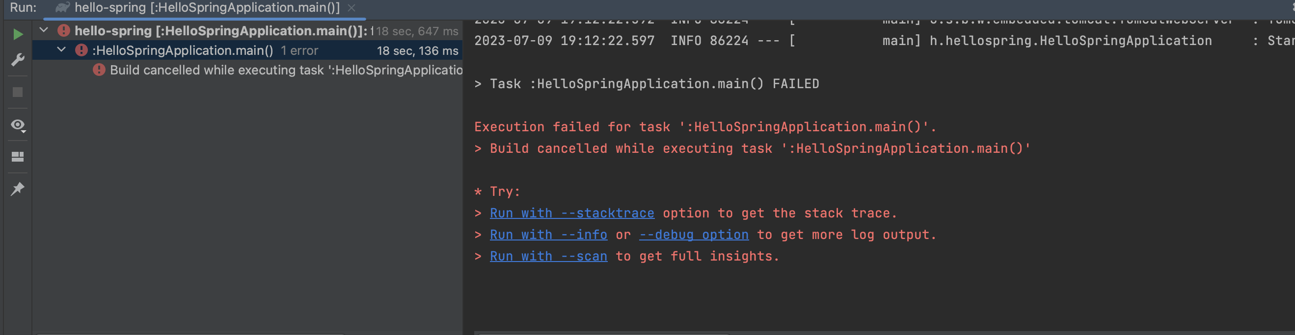 > Build cancelled while executing task ':HelloSpringApplication.main()'