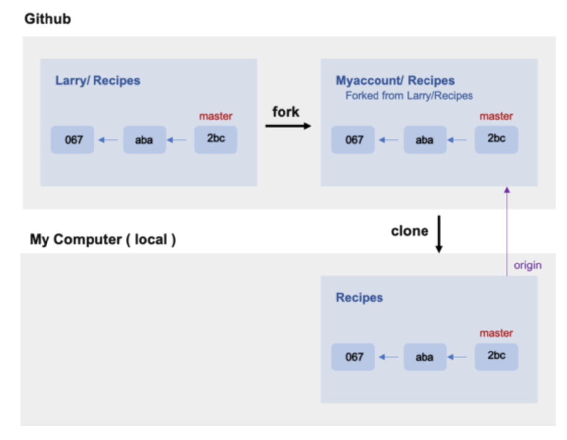 fork는 다른 사람의 Github repository에서 내가 어떤 부분을 수정하거나 추가 기능을 넣고 싶을 때 해당 respository를 내 Github repository로 그대로 복제하는 기능이다. fork한 저장소는 원본(다른 사람의 github repository)와 연결되어 있다. 여기서 연결 되어 있다는 의미는 original repository에 어떤 변화가 생기면(새로운 commit) 이는 그대로 forked된 repository로 반영할 수 있다. 이 때 fetch나 rebase의 과정이 필요하다.