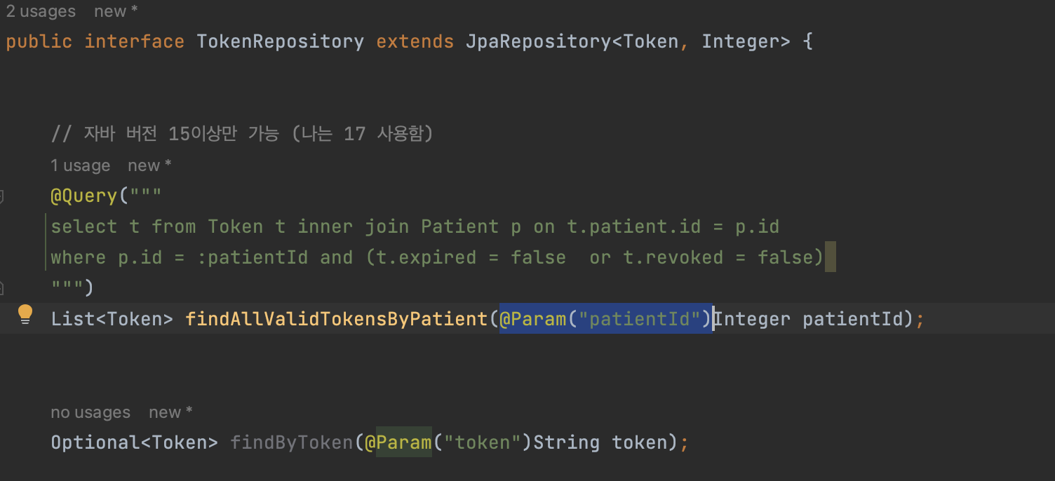 🌾 원인 : Repository에 매개변수에 @Param 설정을 하지 않아서 발생한 문제.