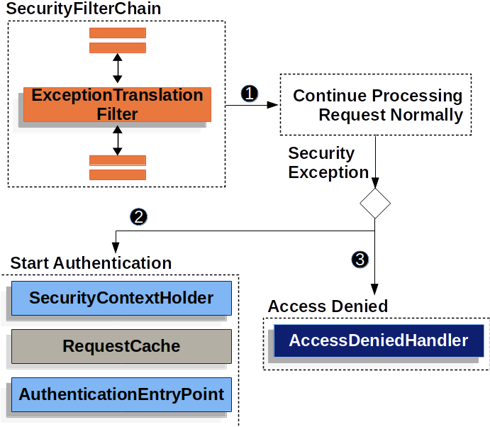 1. 예외가 발생하면 ExceptionTranslationFilter에서 요청 프로세스를 계속 진행한다.
