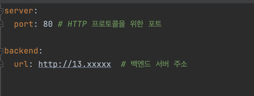 Nginx 포트가 80이기에, 백엔드 서버는 다른 포트번호를 지정해 준다. 나는 8080으로 바꿔 해결했다.